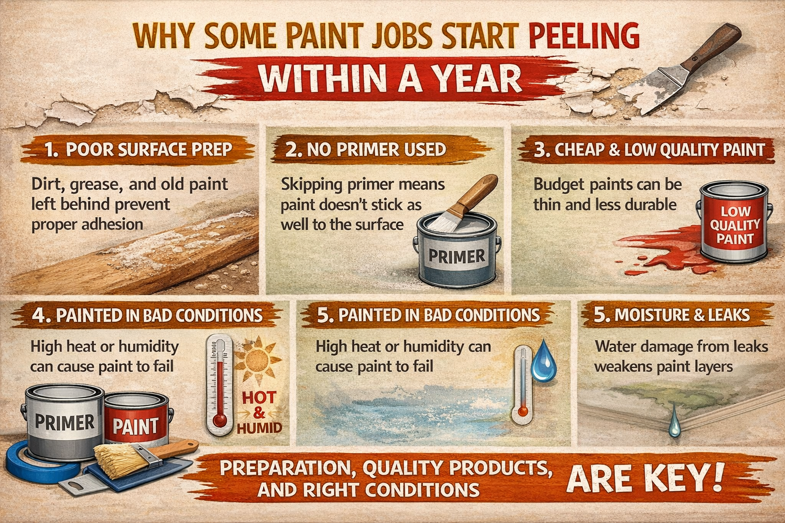 A paint job shouldn’t start failing in a year. If it does, something went wrong long before the peeling showed up. Most homeowners don’t see the early signs. The walls look fine at first. Clean. Even. Fresh. Then small things start to change. A corner lifts slightly. Paint near a switch plate starts to separate. […]